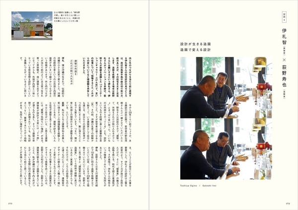 造園家の荻野寿也氏、リノベを依頼した施主の岡本欣也氏との対談などを通し、伊礼氏の頭の中を覗き見できるような世界観がつまっています。