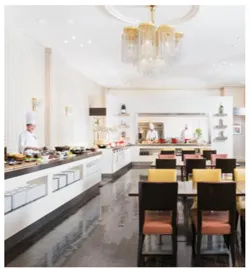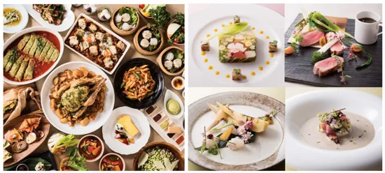 「“選べるたのしさ”と“出来たての美味しさ”をプラスしたディナーバイキング」をコンセプトに、テーブルオーダー制でメインディッシュなど8種類の料理をご用意し、いずれも出来たてでご提供いたします。さらに和・洋・中の料理やデザートなどバイキングメニューも食べ放題です。テーブルオーダー制のメニューとバイキングスタイルのメニューを組み合わせてお愉しみください。