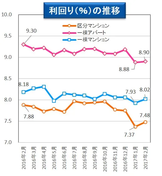 収益物件市場動向マンスリーレポート2017/03 投資用不動産価格上昇の勢い止まる?利回りはわずかに上昇