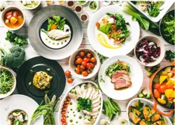 2015年7月にリニューアルしたメイン料理も楽しめるバイキングレストラン。春フェアでは、キャベツやルッコラなどの、みどり野菜を中心としたバイキング料理に加え、メイン料理に人気のローストビーフや魚料理のほか、野菜のメイン料理「桜海老を使った新緑クレープ」も登場します。
