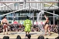 などの相撲の伝統が披露されるとともに、会場のちびっこたちも綱引きや