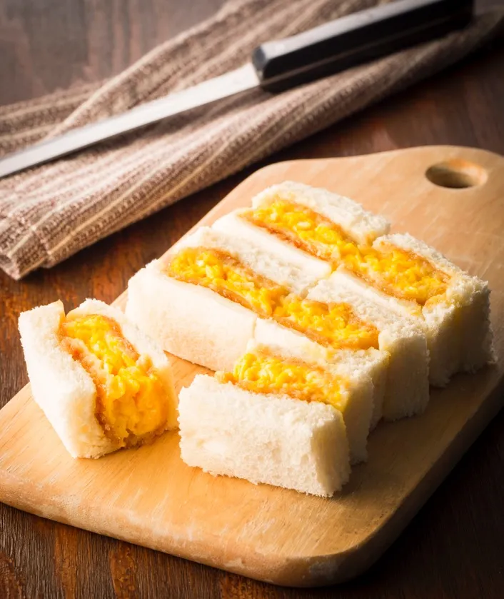柔らかく焼いたふわふわのたまご焼きに衣をつけ油で揚げたものを挟み込んだサンドイッチ。衣のサクサクとした食感と、ふわふわのたまごの食感が絶妙です。出来たてを提供します。