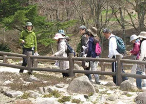 花期が過ぎると地上部が枯れ、残りの期間を地中で過ごすスプリング・エフェメラル(春の短命なもの)と呼ばれる「キクザキイチゲ」や「カタクリ」などをはじめ、雪の中から顔を出す「ザゼンソウ」、「ヘレボルス・チベタヌス」の群生など、さまざまな春の花を楽しめます。4月に入ると、オオヤマザクラやミズバショウ、ツツジ類などが咲き始め、園内は一気に華やかなになります。