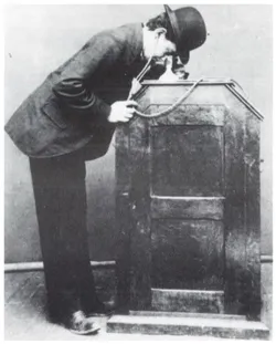 発明王トーマス・エジソンが1891年に特許を申請した動く映像を見るための装置。大勢でスクリーンに映写される動画を見るのではなく、ひとりずつ個別に箱の中を覗いて見る。キネトスコープの発売後、1894年にニューヨークではキネトスコープ・パーラーが開設され、店内に複数台のキネトスコープが並べられ、客が代金を支払って映像を鑑賞していた。