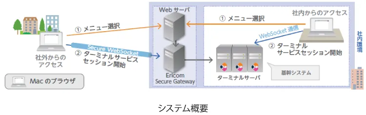・社外からでもブラウザからEricom Secure Gateway(*)を経由して即座に基