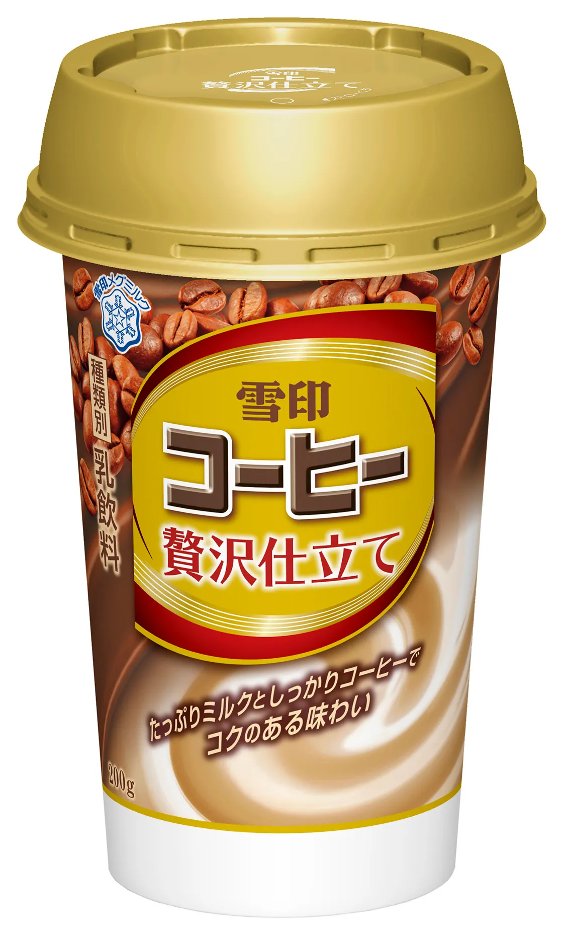 まず1品目は『雪印コーヒー贅沢仕立て』。通常の「雪印コーヒー」に比べてミルク分とコーヒー分をそれぞれ3倍配合することで、ミルクとコーヒー両方の美味しさを贅沢に味わえる、ワンランク上の「雪印コーヒー」です。