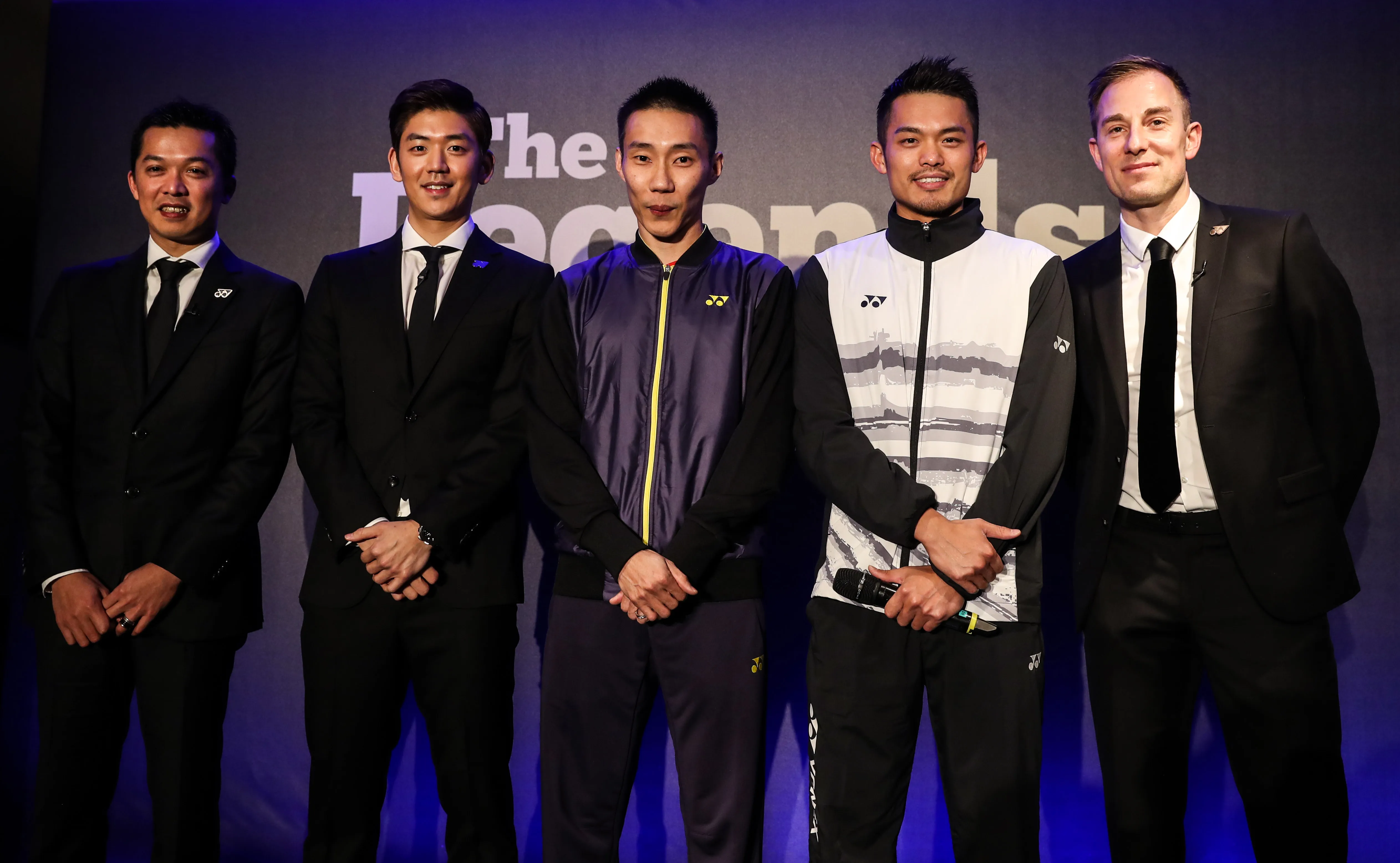 (左から)タウフィック・ヒダヤット、新加入のイ・ヨンデ、リー・チョンウェイ、リン・ダン、ピーター・ゲード