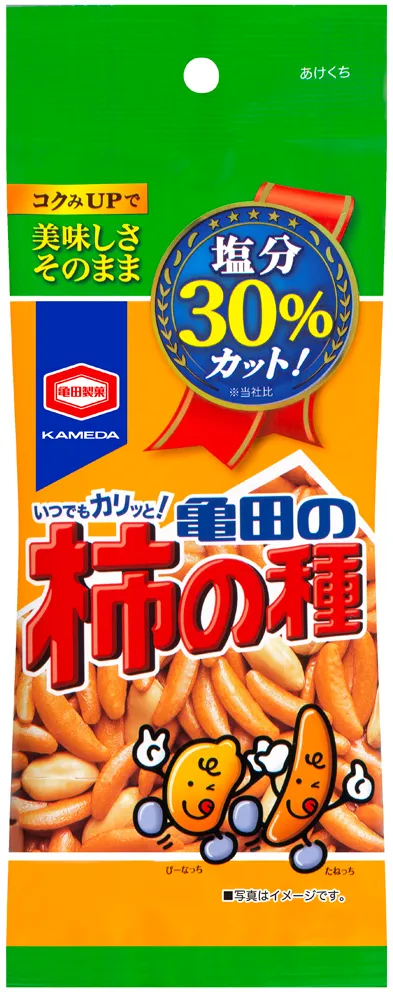 亀田製菓株式会社(本社:新潟県新潟市、代表取締役社長 COO:佐藤 勇)は、お客様の健康志向の高まりを受け、米菓売上No.1ブランド「亀田の柿の種」から、これまでの美味しさそのままで塩分を30%カットし、お出かけなどに便利なサイズの『60g 減塩亀田の柿の種 』(以下:『減塩亀田の柿の種』)を、2017年3月27日(月)に発売いたします。