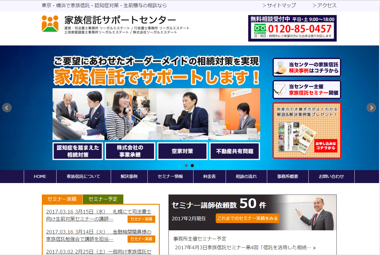 2017年3月28日 11:30司法書士・行政書士事務所・土地家屋調査士事務所リーガルエステート(本社:横浜市神奈川区、代表司法書士:斎藤 竜)は、認知症の解決策として話題の「家族信託」について、当事務所が提供している『家族信託契約サポートサービス』に、2017年4月1日から“10年間のアフターサービス”がセットとなります。