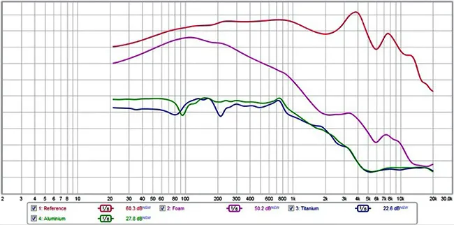 チタン…アルミニウムよりも硬く、最大限に音を遮断します。硬度な素材のため耐久性は抜群です。