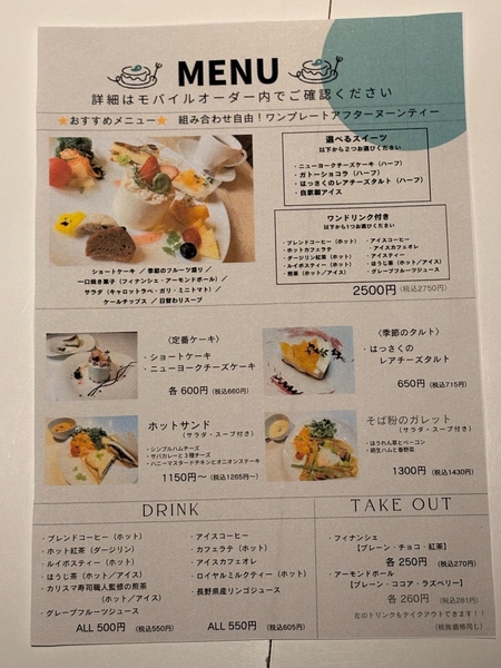 「Jade cake cafe」では、スイーツだけでなく、一品メニューも楽しめます。特に、「ケールチップス」や「ガリと和えたラペ」など、爽やかなアクセントが効いたサイドディッシュや「ホットサンド」や「そば粉のガレット」スイーツとランチの境界を越えた特別な体験を提供します。