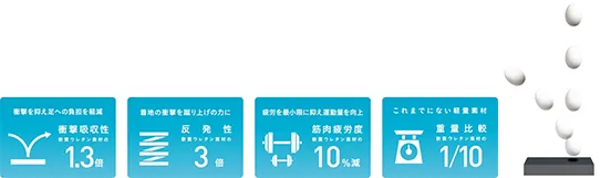 ※トレーニング科学研究所の実験データによる、それぞれ軟質ウレタン素材との比較値。