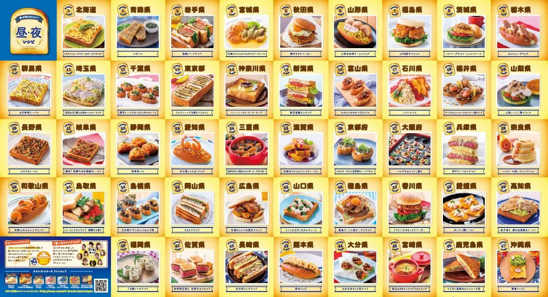 『ネオパンレシピ』とは、「ネオソフト」+パン+47都道府県の食材を組み合わせたご当地パンレシピで、「食べあるキング※」メンバーがそれぞれの専門分野を活かして、レシピを開発しました。