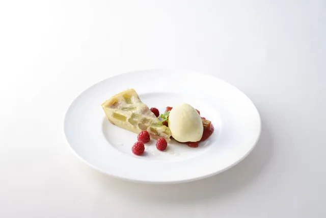 ルバーブとブリーのクラフティ ルバーブコンポートとミルクアイス添え