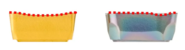 外刃にCVDコーティング、内刃にPVDコーティングのチップを採用。それぞれの特長を活かすことで、高速・高能率加工を実現。また、4タイプの最適なブレーカを選択することで、幅広い加工・被削材に対応するとともに、4コーナーを使用できる設計で、加工コストも低減しました。