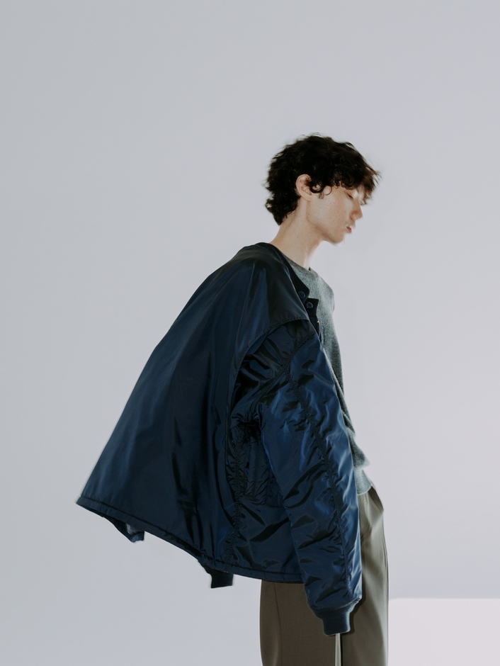 上品な光沢感のあるナイロン生地に、程よくボリュームが出る分量の中綿を入れて仕上げました。