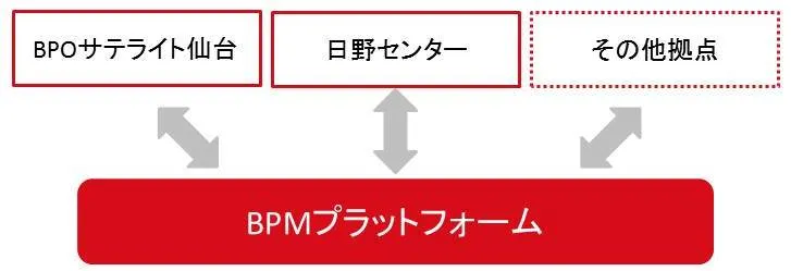 また当社のBPO中核拠点である日野センター(東京都日野市)などの既存拠点や新設した「BPOサテライト仙台」、また今後設立する拠点においてビジネスプロセスマネジメント(BPM)プラットフォームを導入し、業務プロセスの汎用化および自動化を行います。そうすることで複数の得意先業務が同一のプラットフォーム上で運用可能となり、開発工数の削減や進捗・実績管理などの管理工数の削減を実現します。合わせて各拠点間で機動的に受託業務の分散が可能な体制を構築し、生産性や収益性の向上はもとより、事業継続計画(BCP)も強化していきます。