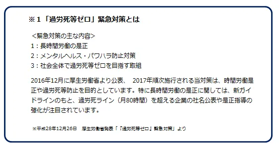 1:過去1年間で過労死ライン(月間80時間)を超える残業をした社員がいた企業は40%。