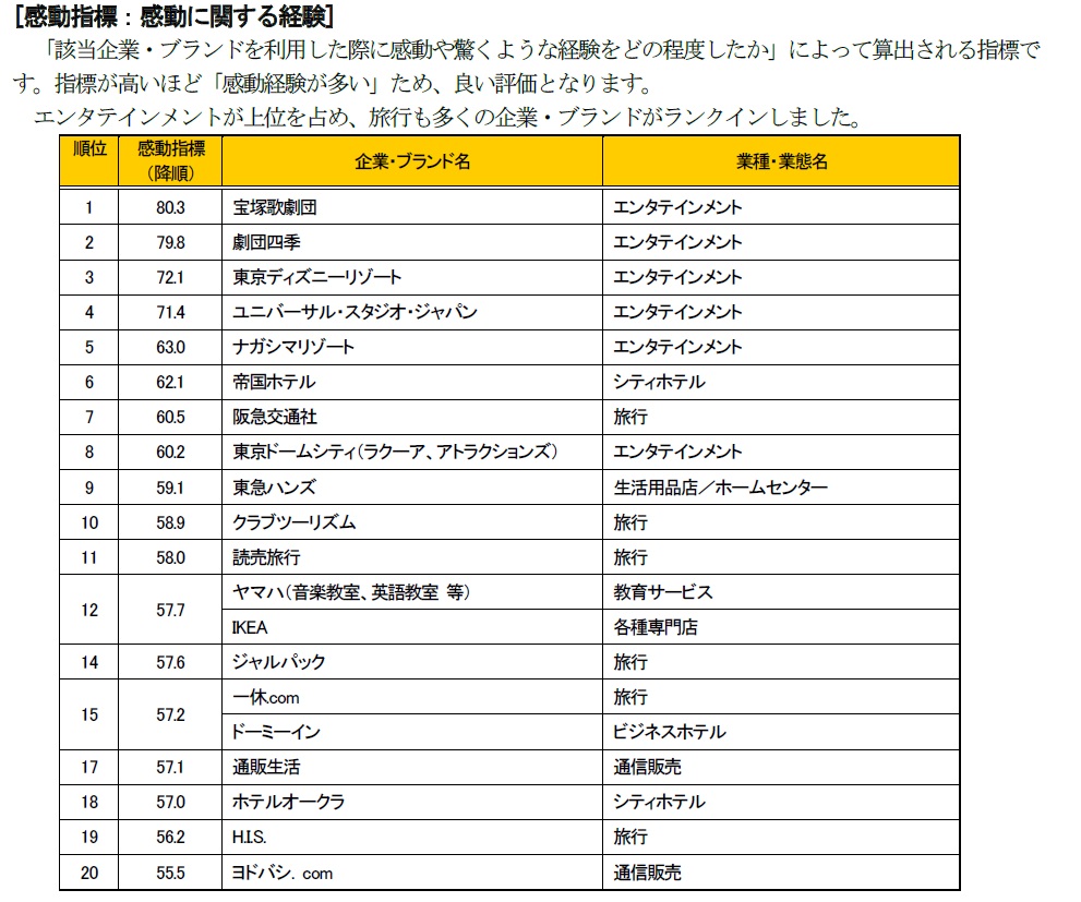 ●企業・ブランド総合順位:宝塚歌劇団が初の総合第1位。知覚価値・ロイヤルティも1位。