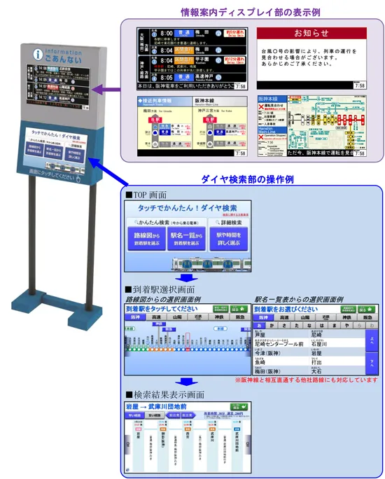 “かんたん操作”が特長の「案内検索端末」を導入(関西初)~先着列車情報・乗換情報・運賃等の検索ができます~