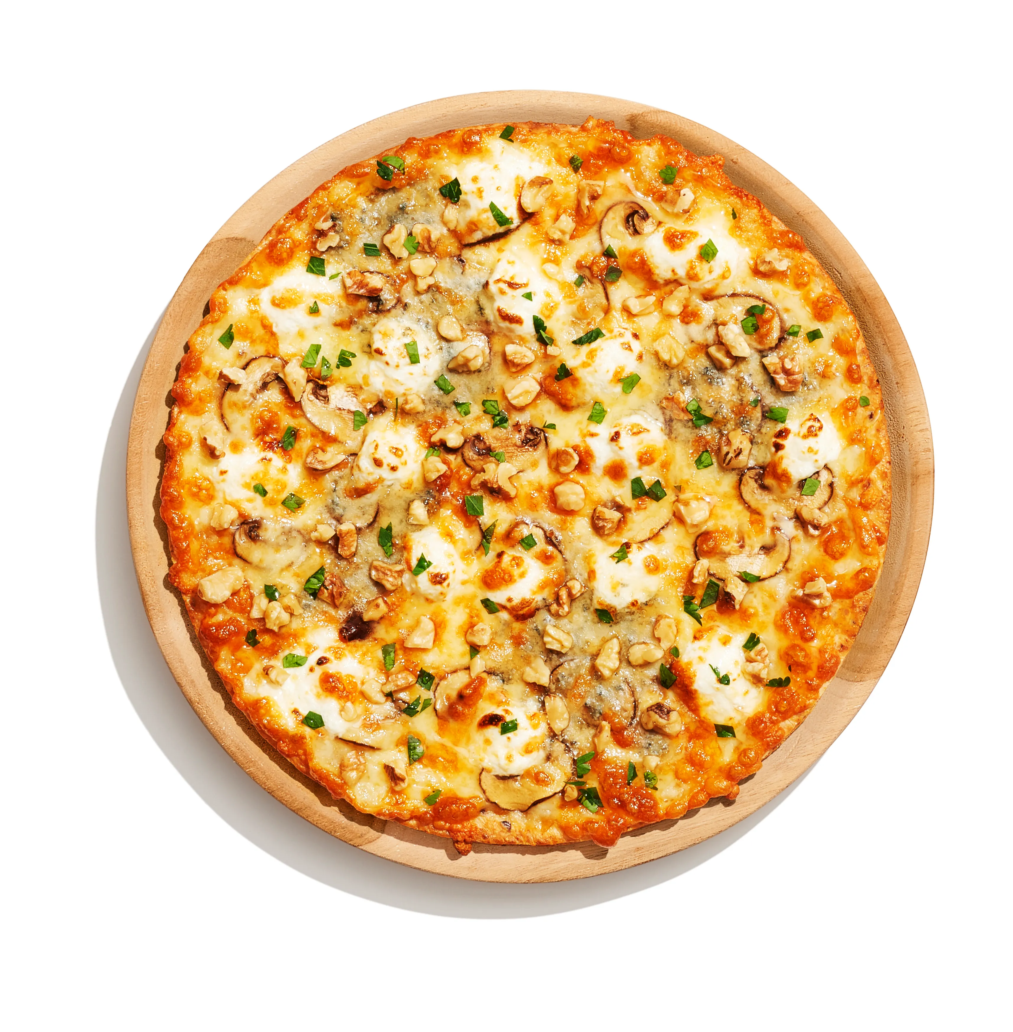 ◆トッピング: クルミ・6種類のナチュラルチーズ(クリームチーズ・ゴルゴンゾーラ・モッツァレラ・ゴーダ・サムソー・ステッペン)・マッシュルーム・フレッシュイタリアンパセリ・アカシアハチミツ(別添)