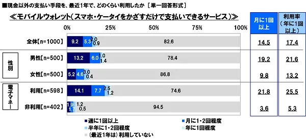 ≫ かざすだけで支払いができる“モバイルウォレット”利用率は17%、電子マネー利用者の4人中1人が利用