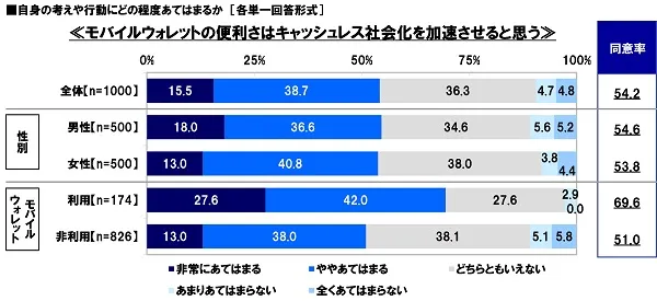 ≫ モバイルウォレットは決済環境整備の起爆剤? 「モバイルウォレットはキャッシュレス社会化を加速させる」5割半