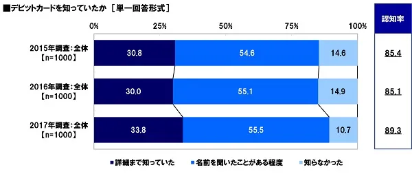 ≫ デビットカードの認知率は89%に上昇 過去調査より「詳細まで知っていた」人が増え理解が進む