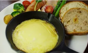 とろとろに溶かしたラクレットチーズ※に、ライ麦パンやハム、野菜などを絡めて食べるスイスの代表的な郷土料理のランチです。ドリンク付き。