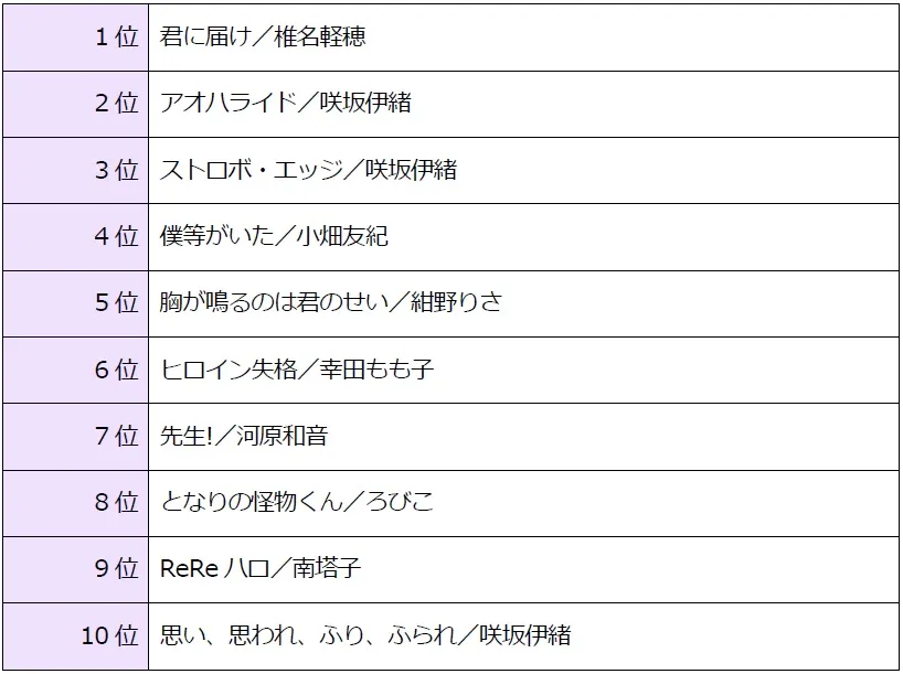 トップ3に挙がったのは『君に届け』(椎名軽穂/集英社)『アオハライド』(咲坂伊緒/集英社)『ストロボ・エッジ』(咲坂伊緒/集英社)でした。いずれも瑞々しい高校生活が描かれている人気作品です。