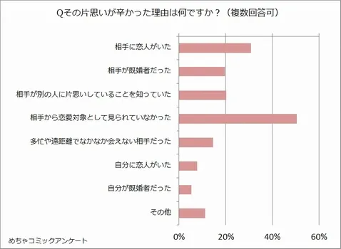 また「辛い片思いをしたことがある」と答えた人に「辛かった理由」をたずねると、下記のような結果に。