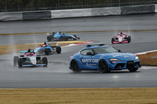 並走状態でTGRコーナーを通過した2台は続くコカ・コーラコーナーで接触。冷えた路面状況のなか、接触のあおりを受けた後続車両7台が各所でスピンや接触を喫してマシンを止め、セーフティカーが導入された。5台がここでレースを終えた一方、平川と#12 細川由衣花(富士山静岡レーシング KC-MG01)が隊列へ復帰。6周目にリスタートを迎えた。下野が再びリードを築くなか、12番手を走行する平川が着実に順位をあげて#87 山本龍(ARF☆おさきにどうぞ☆KC-MG01)に接近。2台の入賞争いはファイナルラップまで続くことに。先頭では下野がトップチェッカーを受けて今季7勝目を飾り、Rd.3のKYOJO Sprintから続く連勝記録を更新。2位に翁長、3位に斎藤が続いた。8位でレースを終えた山本はペナルティを受けた#33 岩岡万梨恵(FUKUDA racing KC-MG01)に代わって7位に繰り上がり、今季初の入賞を果たした。一方、9位フィニッシュの平川は他車への衝突とコースアウトによって30秒のタイムペナルティを受け、13位となった。