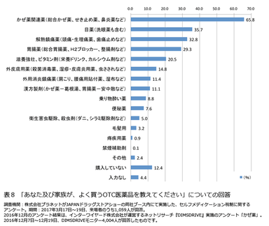表8「あなた及び家族が、よく買うOTC医薬品を教えてください」についての回答