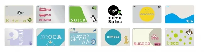 「Kitaca」は北海道旅客鉄道株式会社の登録商標です。「Suica」「モバイルSuica」は東日本旅客鉄道株式会社の登録商標です。「PASMO」は株式会社パスモの登録商標です。「TOICA」は東海旅客鉄道株式会社の登録商標です。「manaca/マナカ」は、株式会社名古屋交通開発機構及び株式会社エムアイシーの登録商標です。「ICOCA」は西日本旅客鉄道株式会社の登録商標です。「PiTaPa」は株式会社スルッとKANSAIの登録商標です。「SUGOCA」は九州旅客鉄道株式会社の登録商標です。「nimoca」は西日本鉄道株式会社の登録商標です。「はやかけん」は福岡市交通局の登録商標です。「icsca」は仙台市の登録商標です。