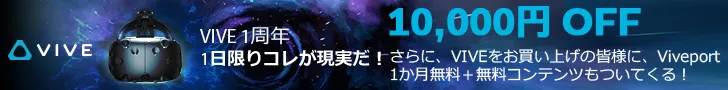 パソコン工房を運営する株式会社ユニットコム(代表取締役:端田泰三、本社:大阪市浪速区)は、VR向けヘッドマウントディスプレイ『 VIVE 』の発売1周年を記念し、Webサイトおよび全国取扱店舗にて、『 VIVE 』が10,000円引きで購入できるキャンペーンを4月5日(水)限定で実施いたします。