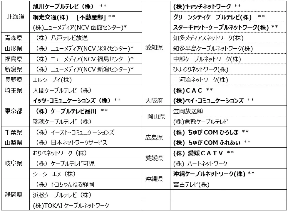 (ケーブルテレビ局37局 / 不動産事業1社)