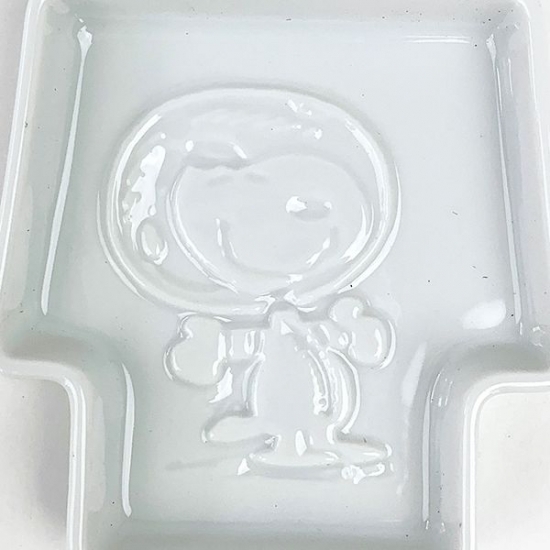 こんなです。価格は660円程度のプチプラ。約8センチ角。ベーシックなスヌーピー、ジョークルール、アストロノーツと3種類出ていますが、多分、このアストロノーツはすぐになくなってしまうでしょう。アストロノーツモチーフの食器は、とても珍しい。