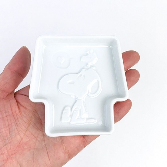 プチプラ!お醤油を入れると顔が浮かび上がる!つるりとしたスヌーピーのディッププレートがプレゼントにうってつけ。