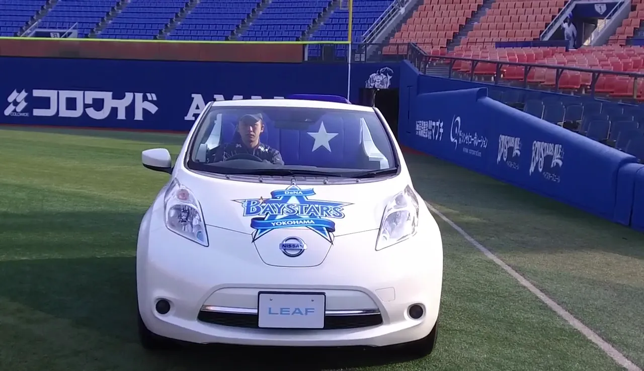 【ただいま!ハマスタ! 日産「リーフ」リリーフカーが横浜スタジアムに参戦】