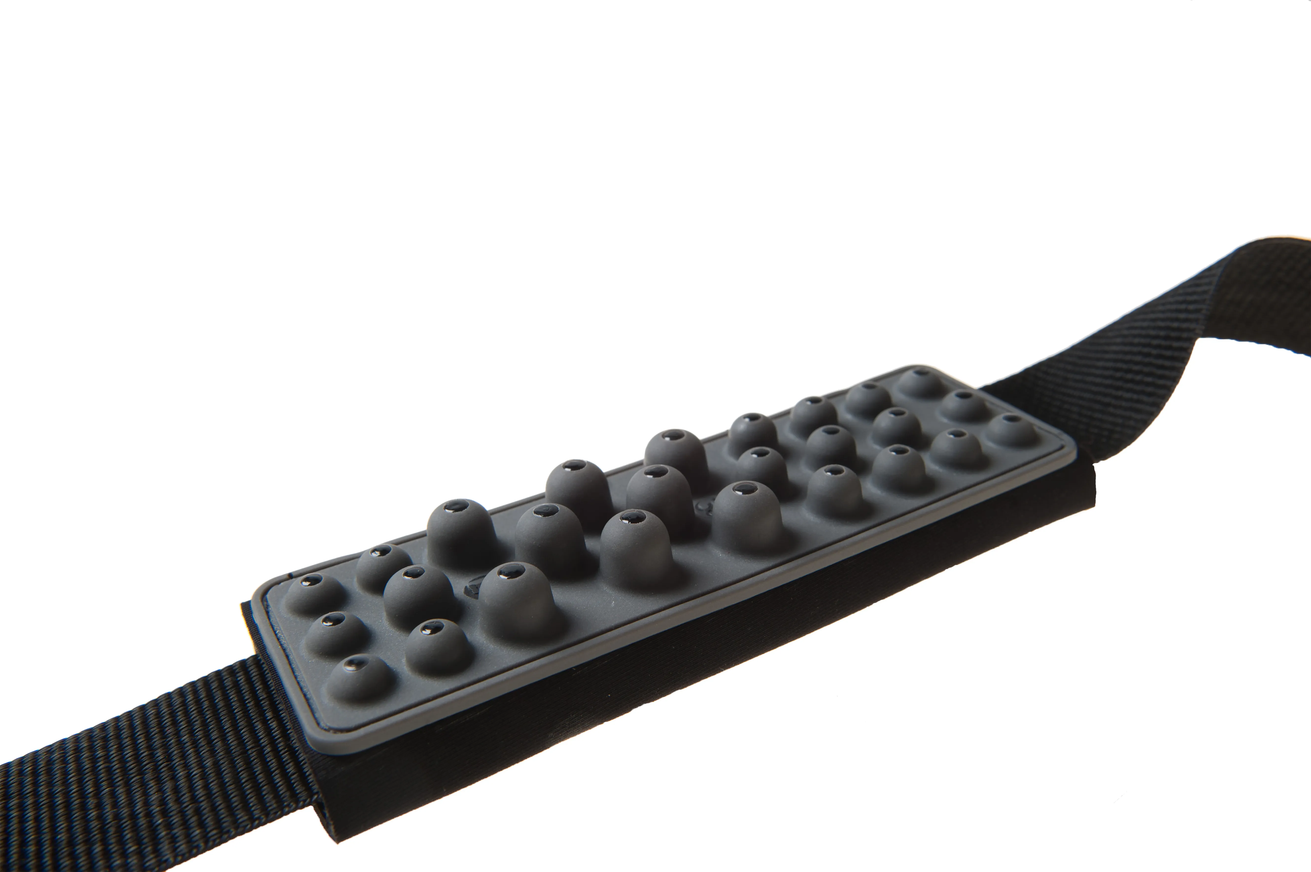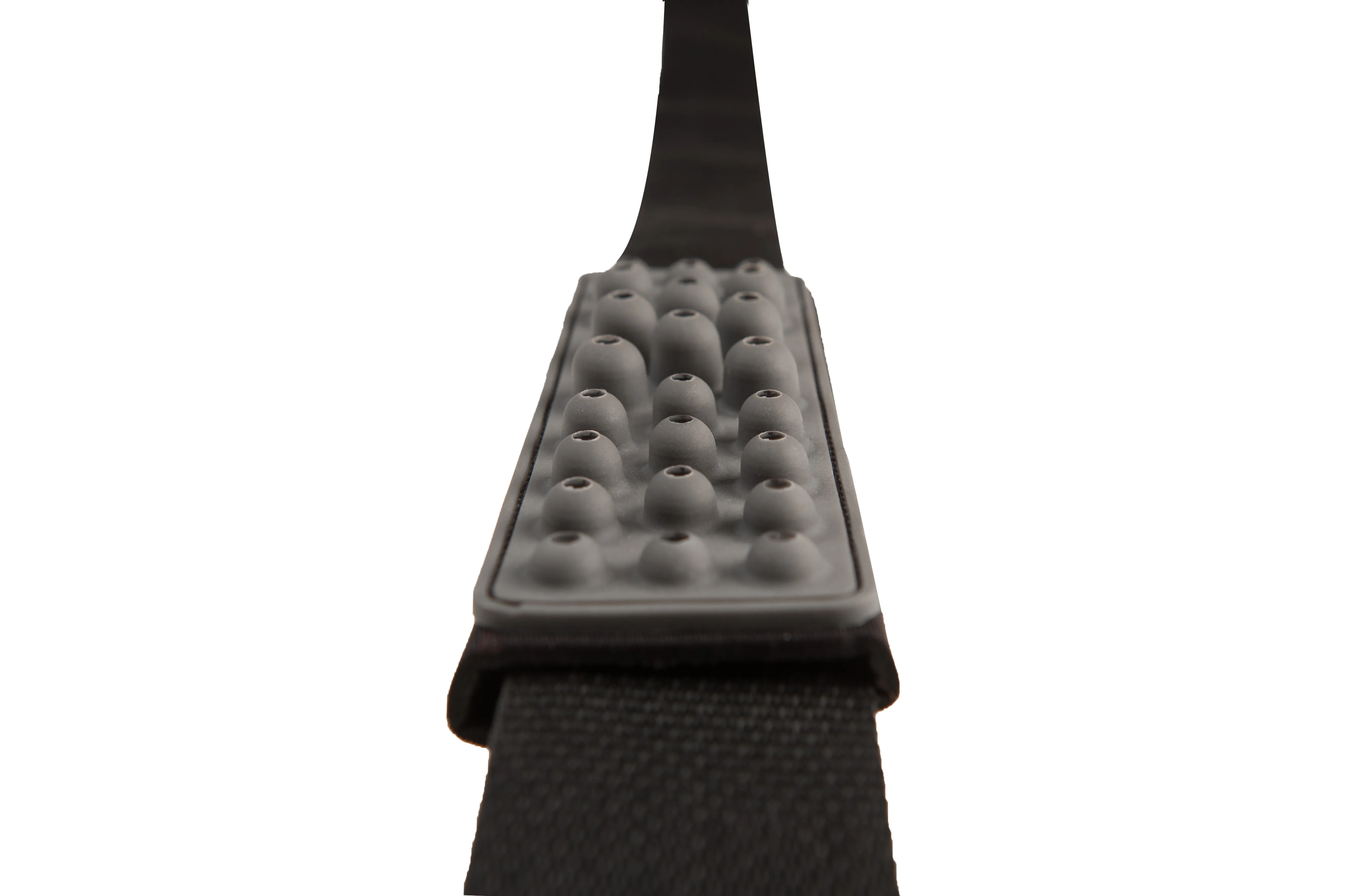 本製品は、強力なマジックテープでストラップに簡単に装着ができ、両サイドにスライドさせることで位置の調節ができます。パッドのサイズは、スタンダード(5.08〜6.35センチ幅)と、ワイド(7.62〜8.89センチ幅)の2種あり、ほとんどのギターストラップに対応しています。パッドにはTPEポリマー素材が使用され、大きさの異なる突起によって必要な圧力を加えます。