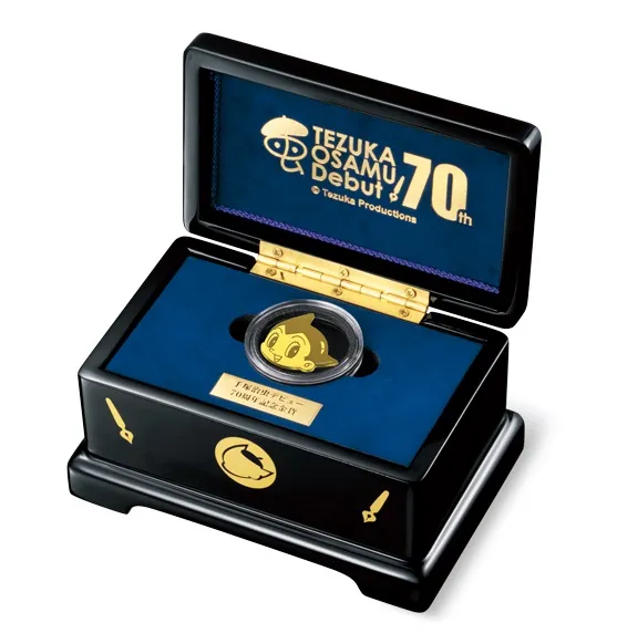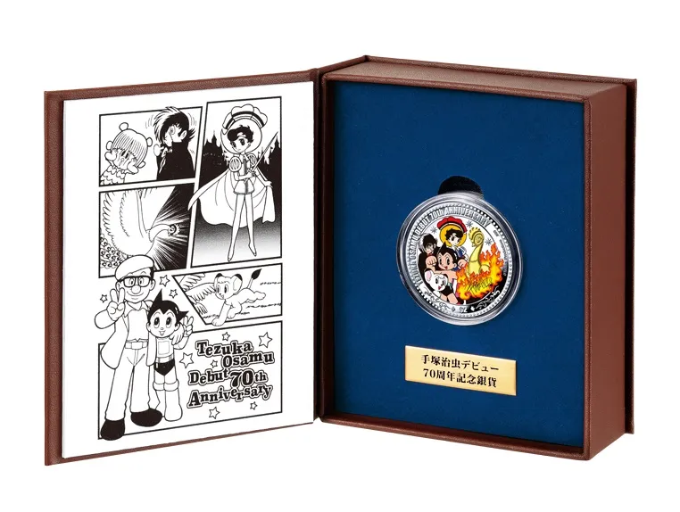 手塚治虫デビュー70周年を記念して、史上初となる アトムの“顔型”純金貨と手塚キャラクターが 色鮮やかに描かれた純銀貨が登場!