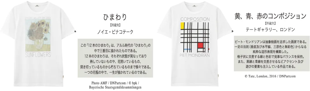 「アートの世界を身近に」をテーマに、誰もが知っている世界の名画から厳選し、Tシャツにしました。