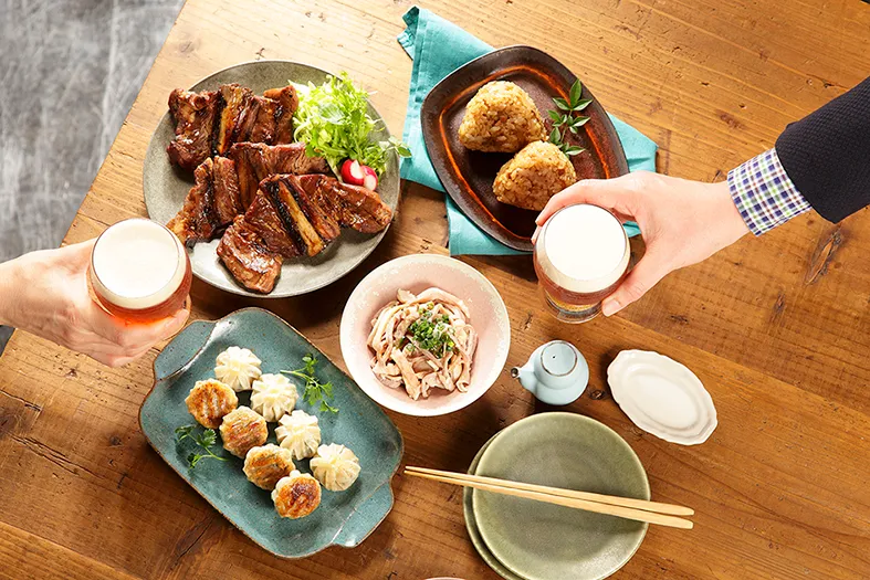 平日の仕事帰りに博多の屋台でチョイ飲みを楽しむイメージで、サラリーマンをターゲットに博多グルメの骨付ヤキトン、酢モツ、ひとくち餃子などとクラフトビールを味わえるコーナーを設けました。また、福岡定番の博多らーめんやもつ鍋ちゃんぽんもイートインで展開します。