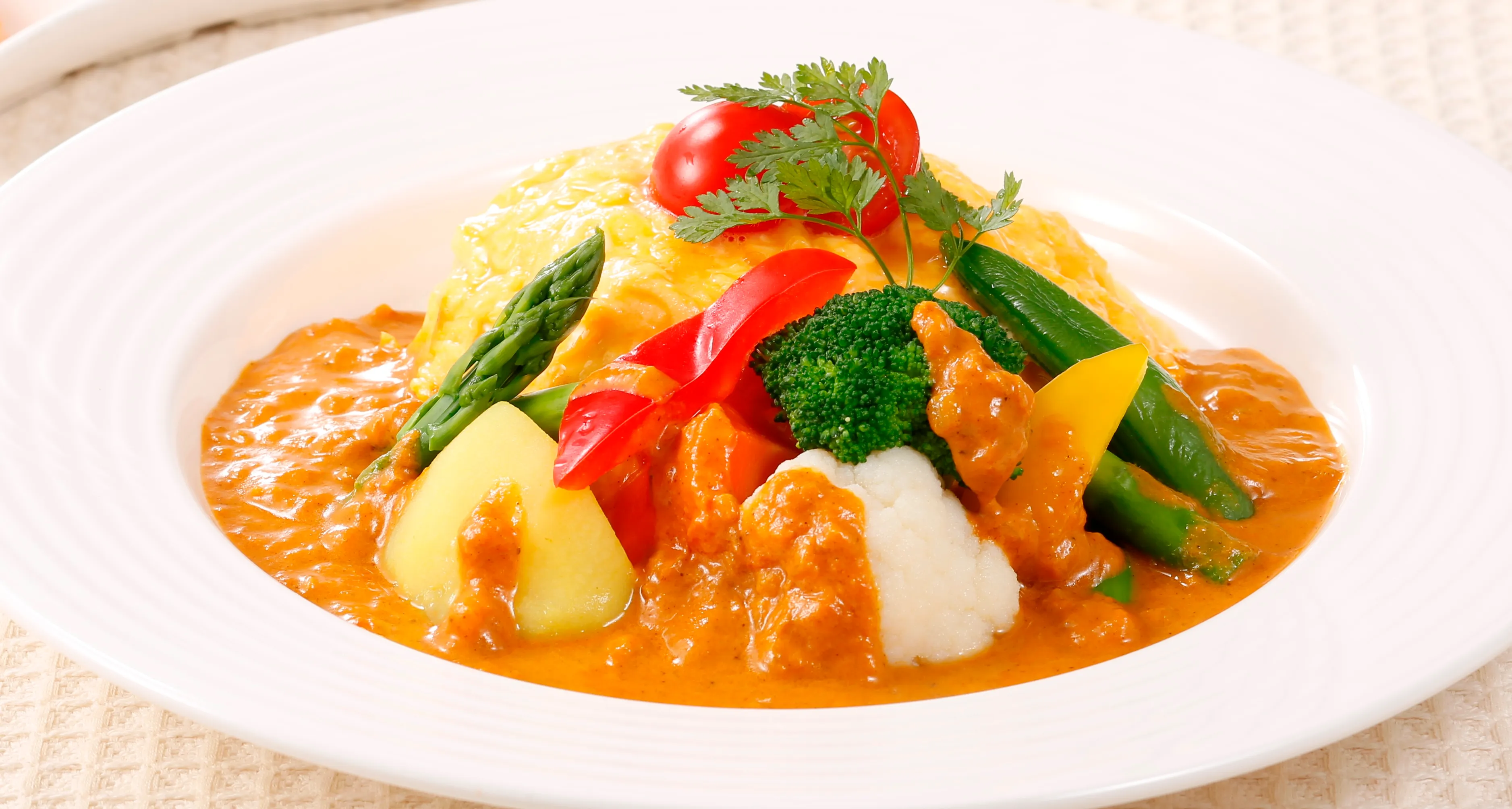 メニューの中でも女性に人気のオムライスに、カリー専門店ならではの南インド風の野菜カリーと、中村屋の洋食の調理技術を生かした肉と野菜の旨みが効いたデミグラスソースのオムライス2品を新たにご用意しました。スパイシーな料理で野菜をたっぷり摂りたい方やスパイシーな料理が苦手な方でもお楽しみいただける、とろとろ卵とケチャップライスによく合うオムライスをご賞味ください。