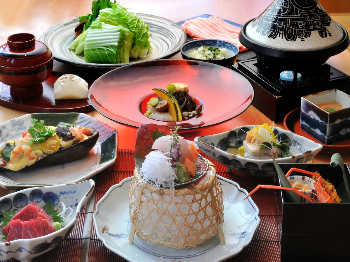 登録有形文化財に指定されている老舗旅館です。球磨川を眼下に見下ろすことのできる眺望とともに、鮎や黒豚など、人吉の大自然に育まれた食材を活かした郷土料理を楽しめます。