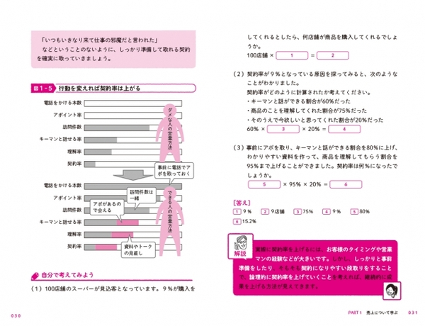 仕事で成果を出すためには、論理的に考えて行動することが必要です。売上や利益の増やし方がわかったら、自分が行動するだけでなく、状況に応じて上司や部下を説得して動かしたいもの。本書で紹介する「計算式」を、そのための武器として使ってください。