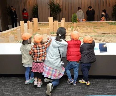毎日のお散歩からちょっと足を伸ばした子どもたち。初めて見るモデルルームに目を輝かせながら、モデルルーム探検がはじまりました。子ども部屋のおもちゃに歓声をあげたり、ベランダから見える風景写真を眺めて室内を廻ったあとに、武蔵小杉の街のジオラマがあるスペースへ。週末にパパと行く地元サッカーチームの競技場を見つける子、近所のおじいちゃんのお家を探す子など、空から見る街の光景にあちこちで歓声があがりました。最後は、家をかたどった紙製バッグ(おうちバッグ)作りです。屋根や壁に思い思いのパーツを貼り付け、持ち手を通して完成。お土産となった「運べるお家」を手に、スタッフに見送られながらモデルルームを後にしました。