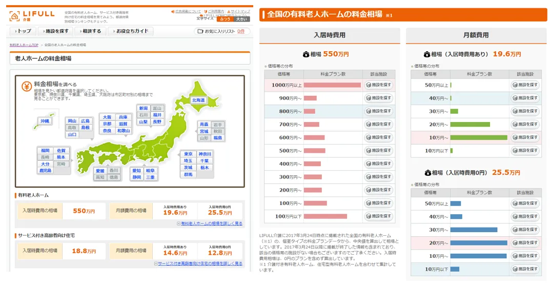 LIFULL介護「老人ホームの料金相場」