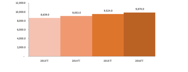 一人当たりの米国医療費、(USD)、2013ー2016年