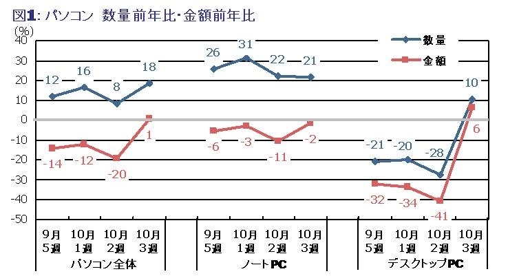 【不調が続いていたデスクトップPCは、数量、金額ともに前年越えに】
